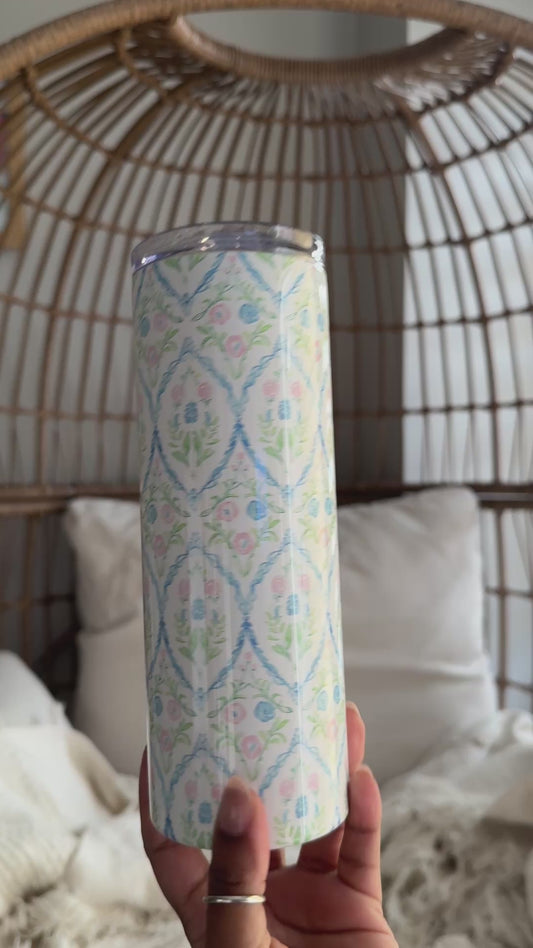 Daphne Tumbler- 20oz stainless Steel Floral Insulated Cup with Lid & Straw