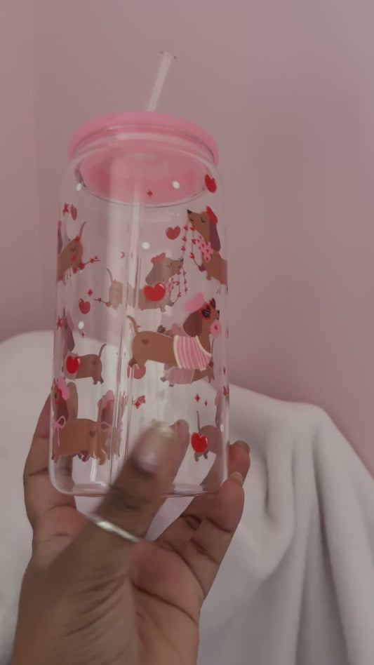 Doxie in Love | 16oz Tumbler with Plastic Lid & Glass Straw
