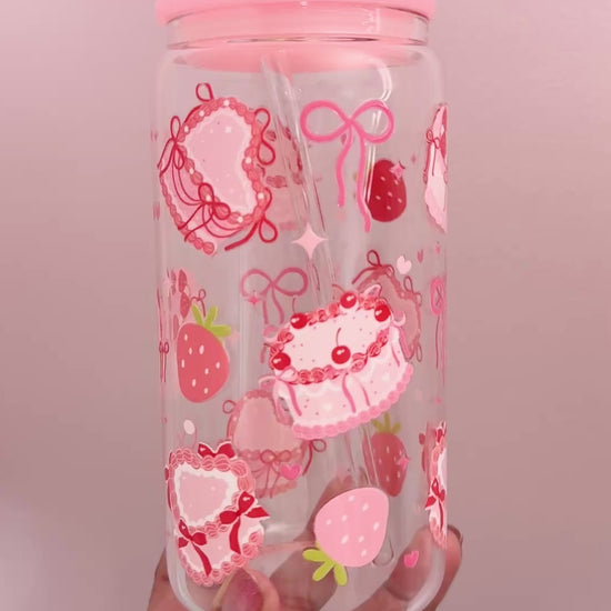 Buttercream Bliss Glass Cup | 16oz Glass Cup with Lid