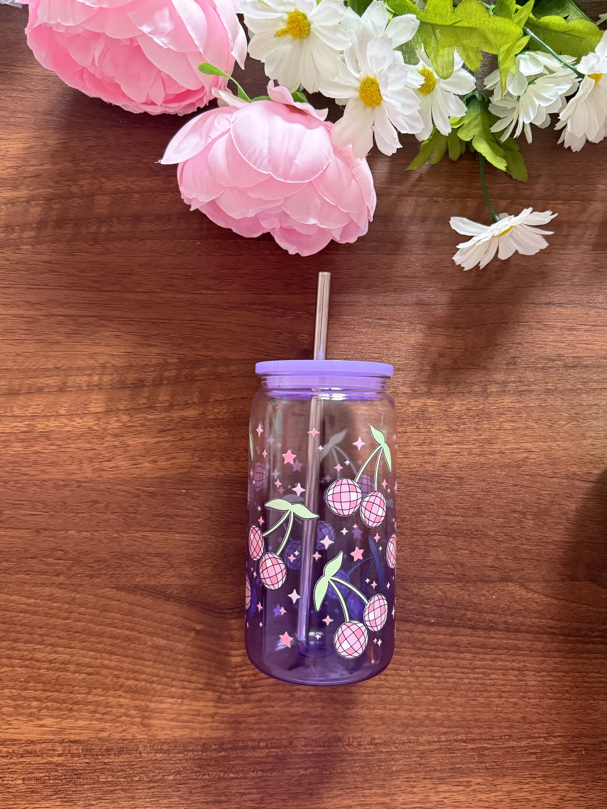 Disco Cherry Cup | Plastic Cup with Plastic Lid & Stainless Steel & Plastic Straw