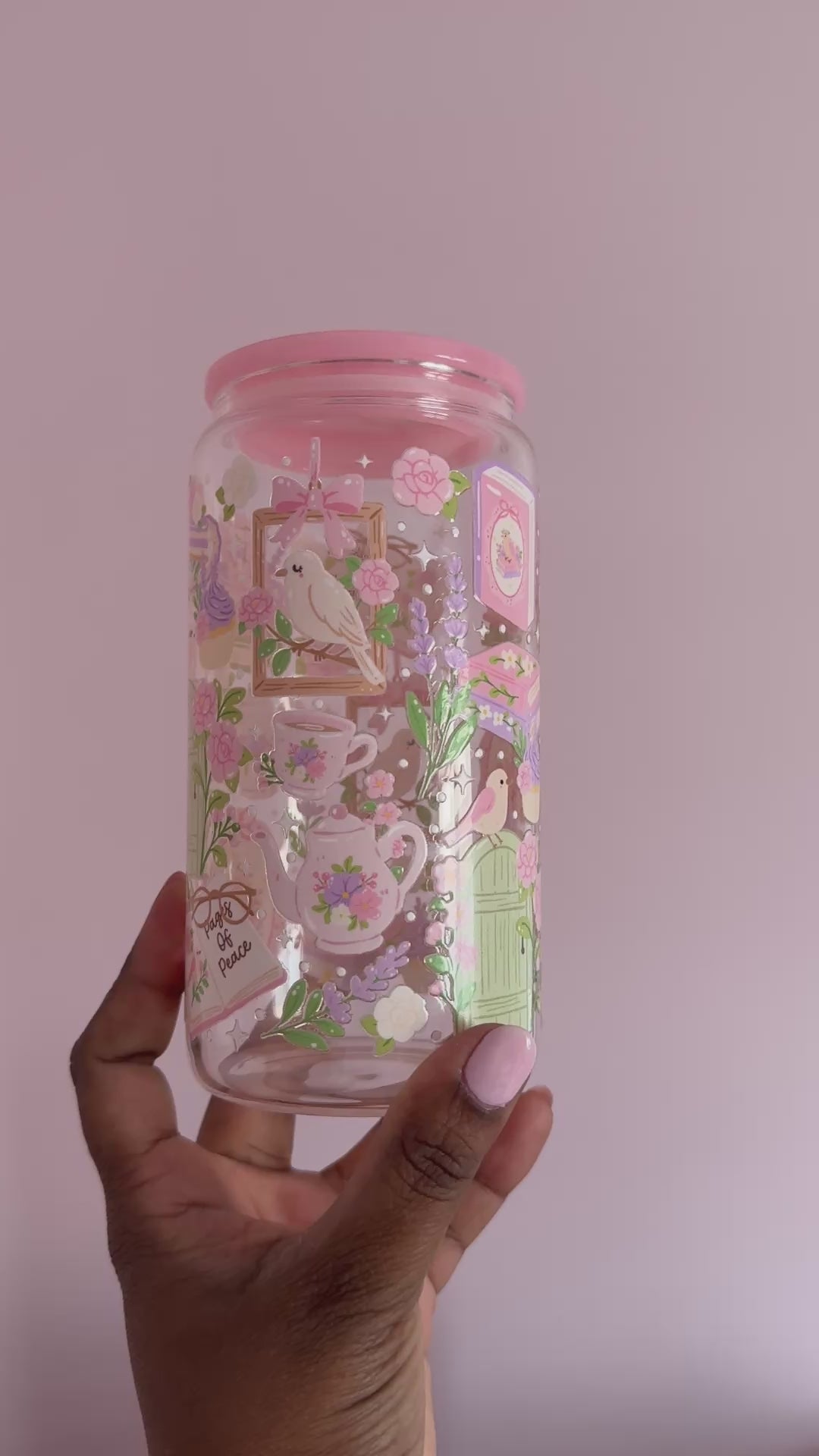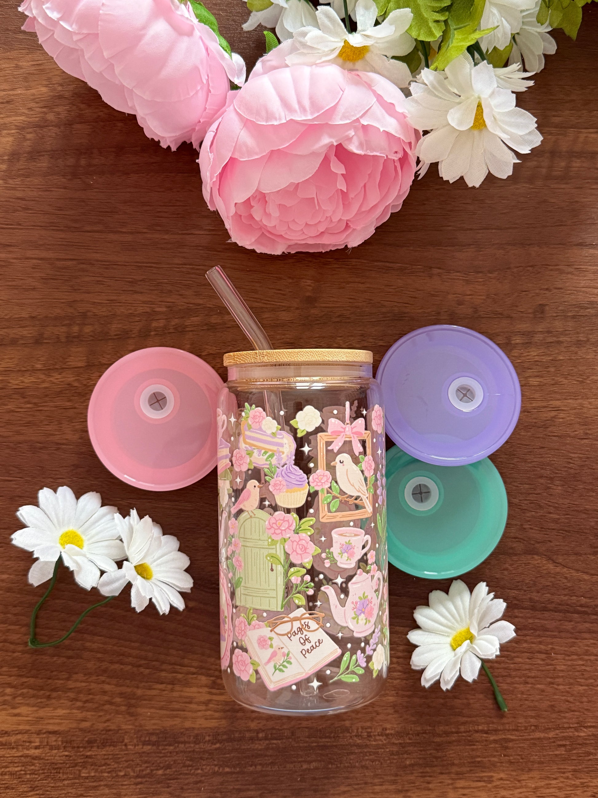Garden Reader | Glass Cup with Plastic/ Bamboo Lid & Glass Straw