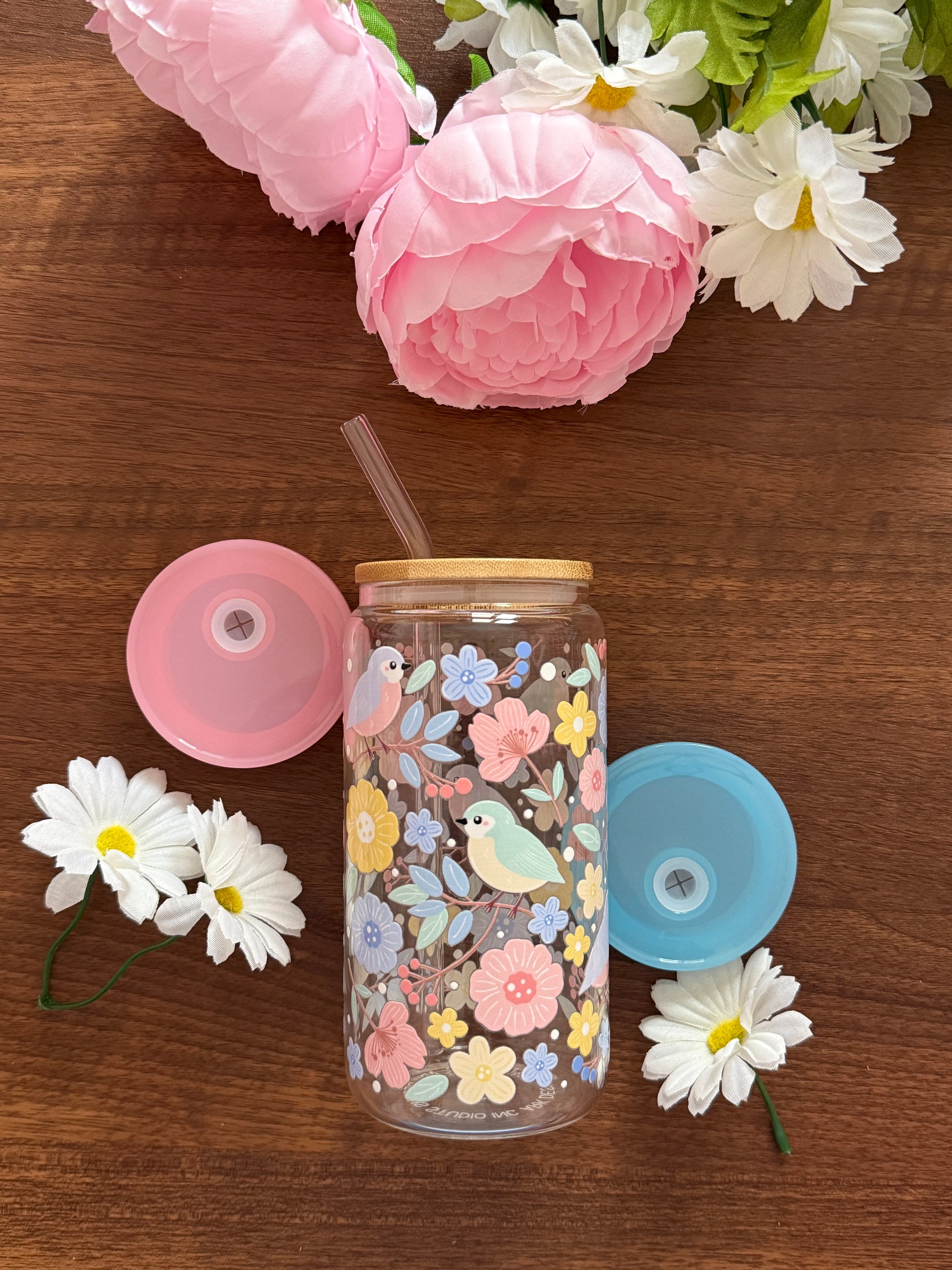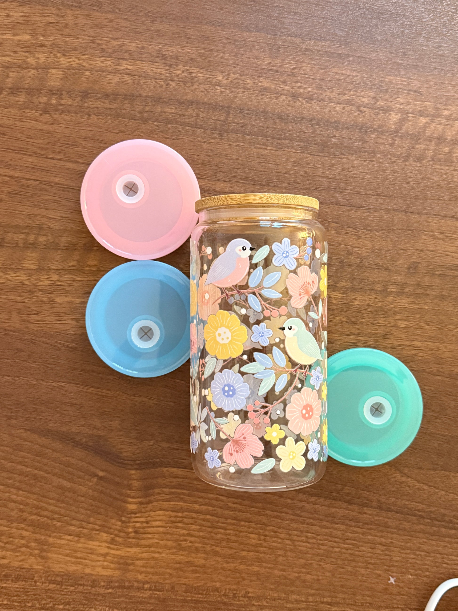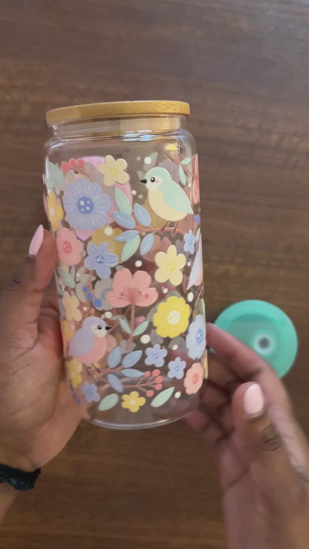 Paradise Cup | Glass Cup with Plastic/ Bamboo Lid & Glass Straw