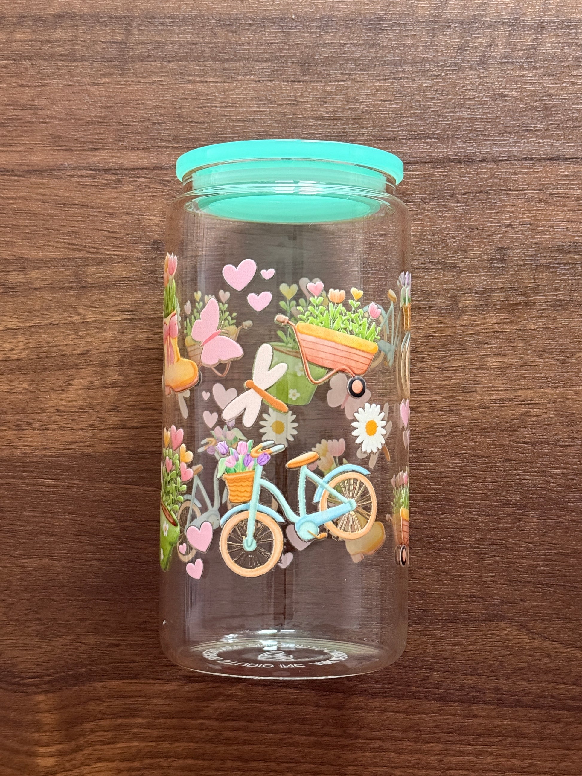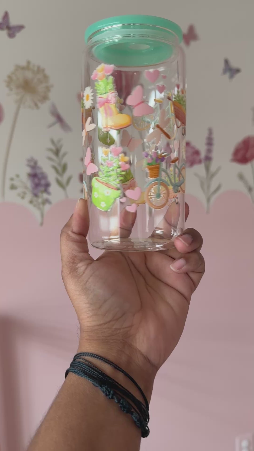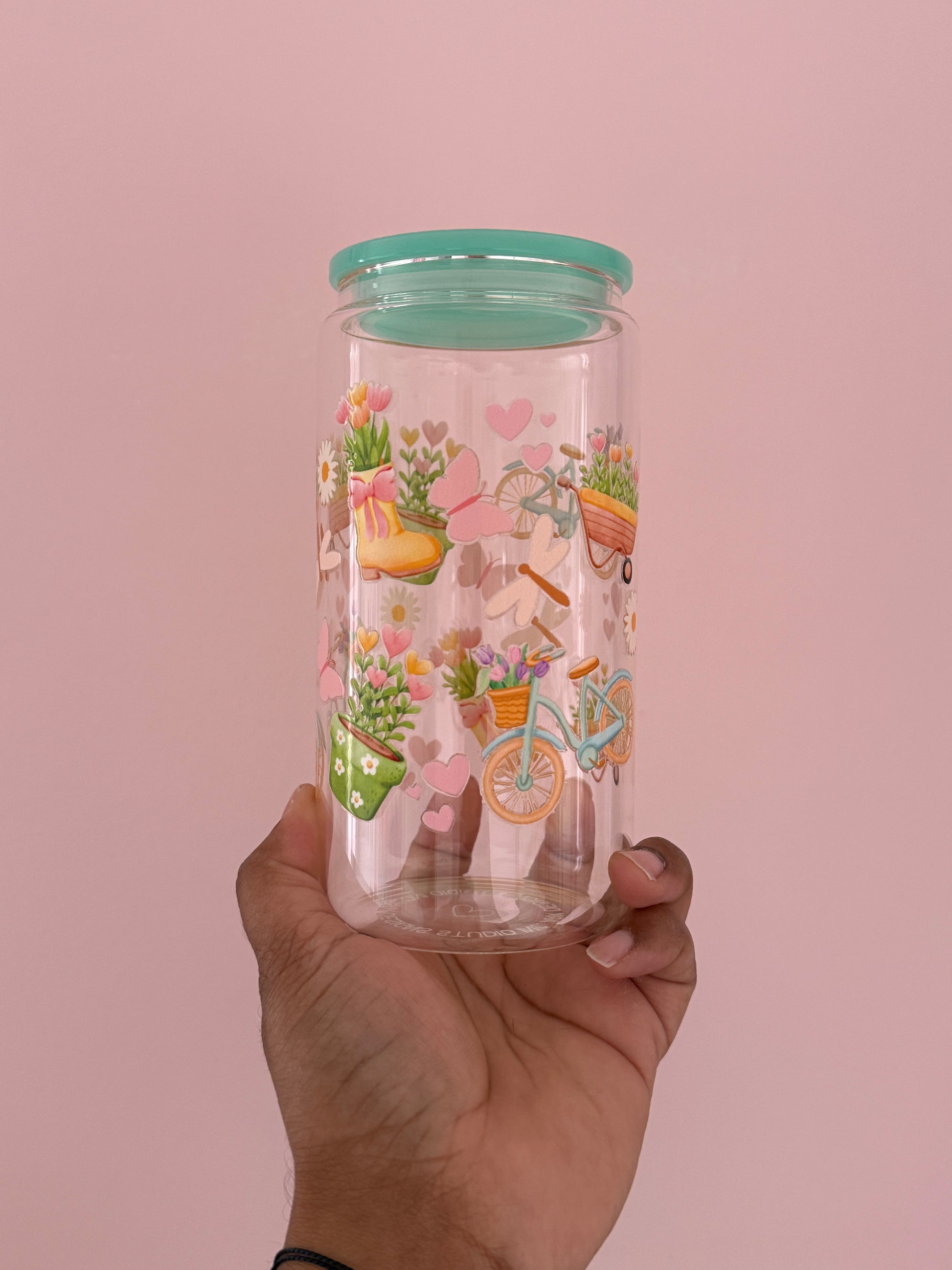 Spring Things | Glass Cup with Plastic/ Bamboo Lid & Glass Straw